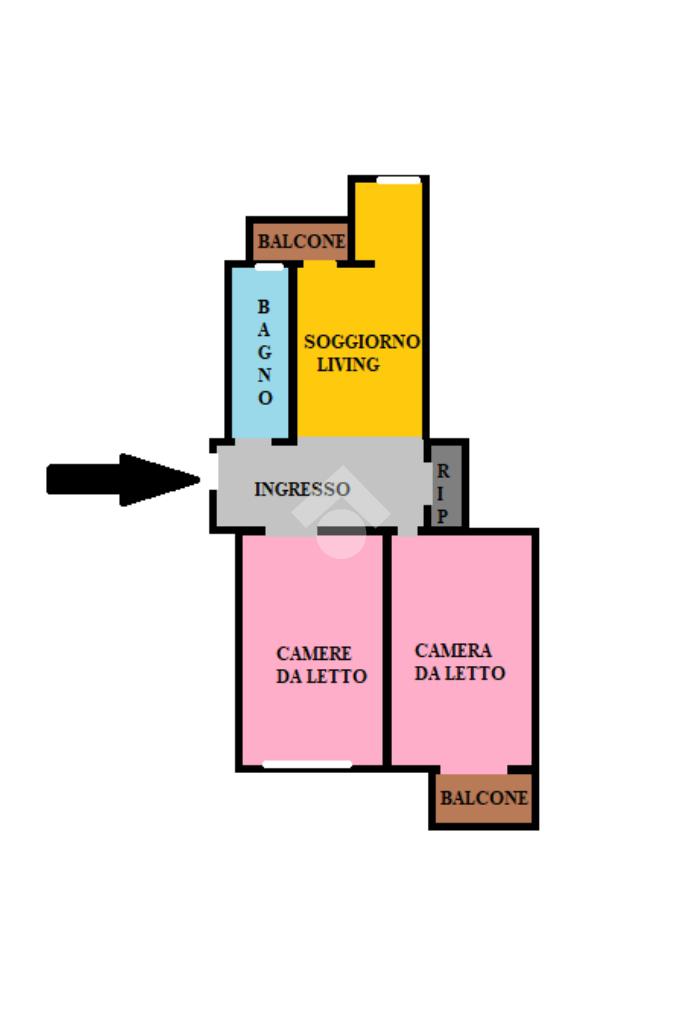 L'appartamento è composto da: ingresso living su soggiorno con cucinino a vista con balcone lato interno cortile, due camere da letto spaziose di cui una con balcone lato strada e l'altra finestrata, comodo ripostiglio e bagno con box doccia e finestra.